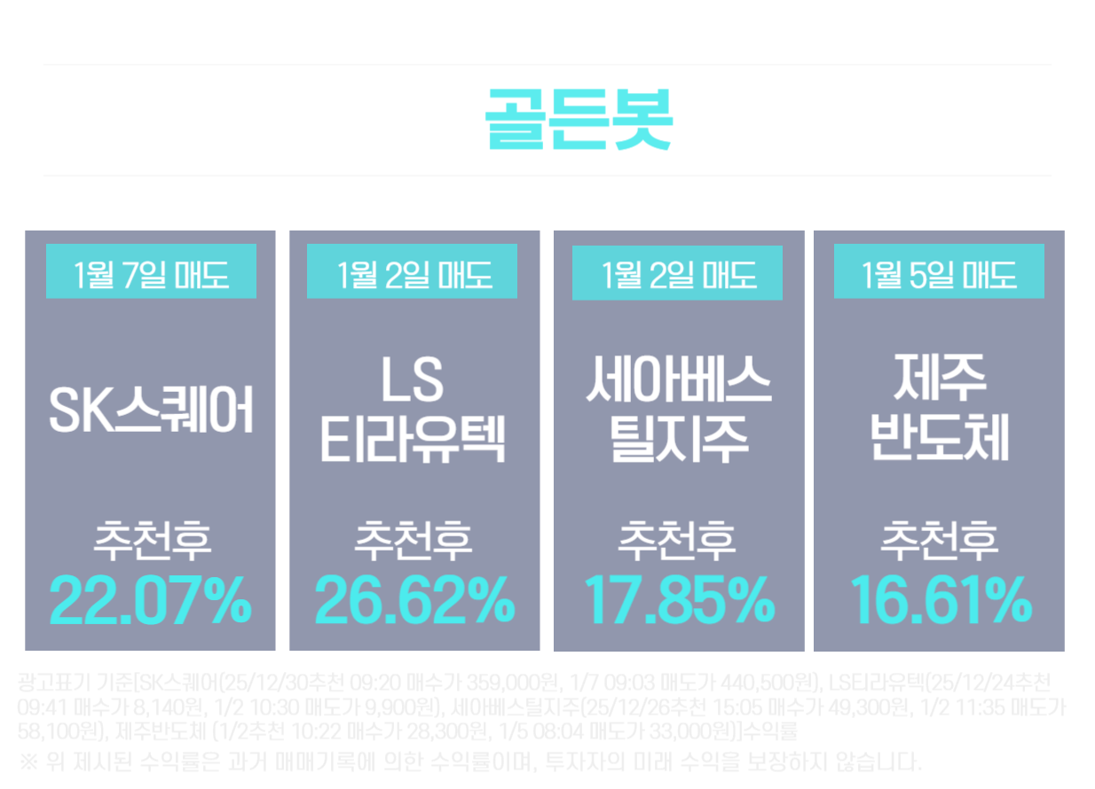 - 핵심전략 계약된 종목 개수 발송 이후 종목 수익률이 목표치에 도달하지 않을 경우 추가 종목이 추천 될수 있습니다.