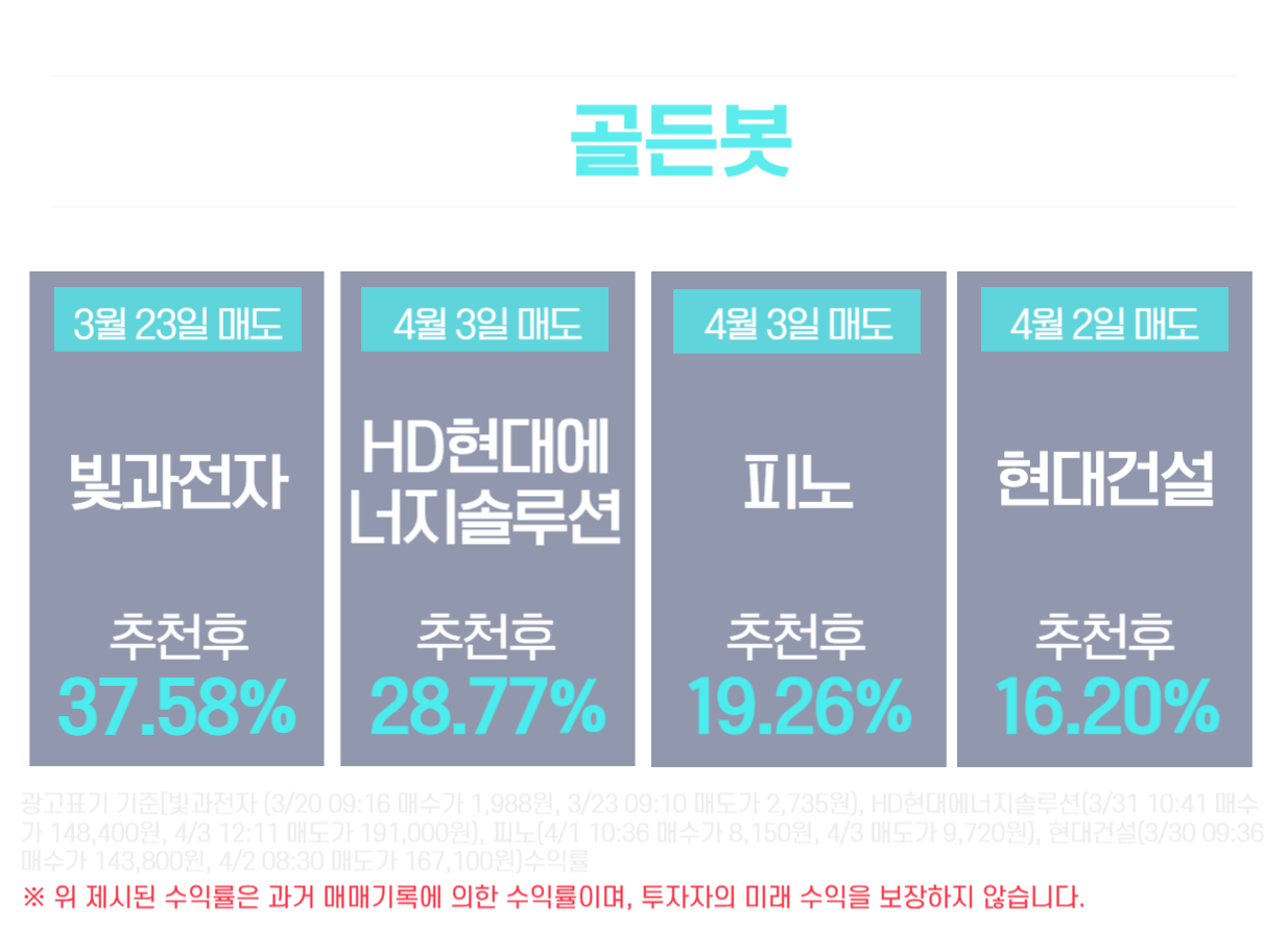 - 핵심전략 계약된 종목 개수 발송 이후 종목 수익률이 목표치에 도달하지 않을 경우 추가 종목이 추천 될수 있습니다.