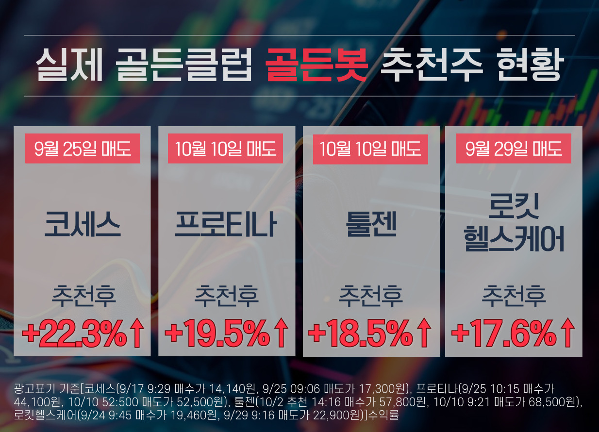 - 핵심전략 계약된 종목 개수 발송 이후 종목 수익률이 목표치에 도달하지 않을 경우 추가 종목이 추천 될수 있습니다.